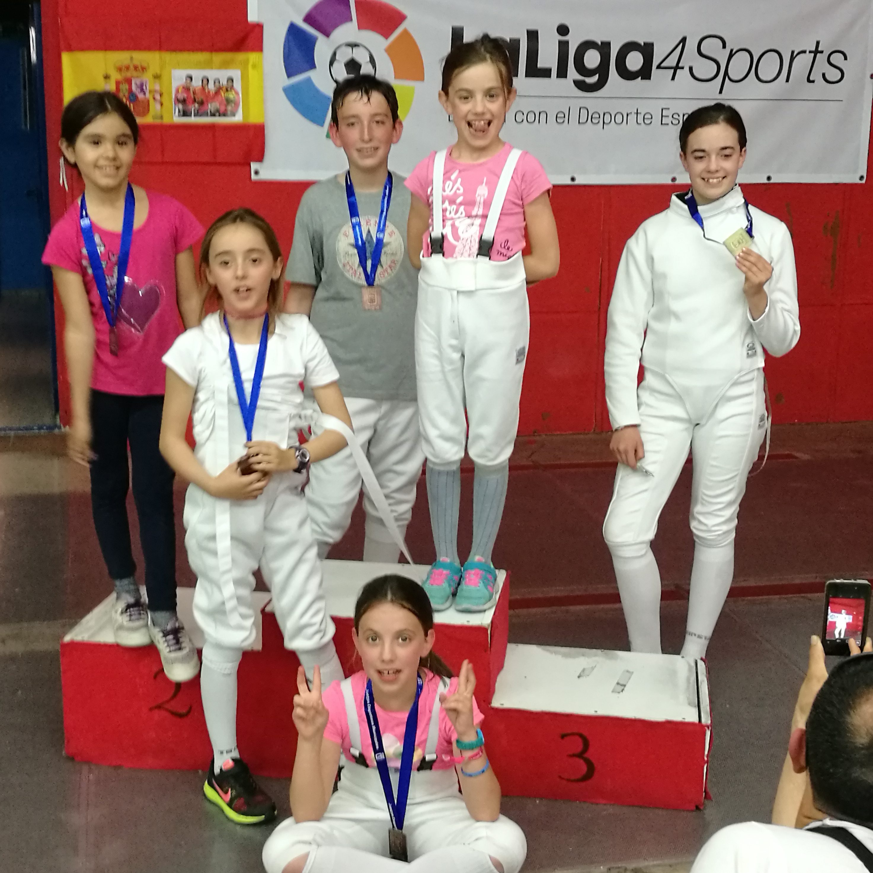 El pasado domingo 7 de mayo compitieron nuestros alumnos: Olivia, Elisa, Celia, Elena, Andrea, Alicia, Jorge y Ángel. En esta ocasión Alicia Jimeno obtuvo medalla de oro y Olivia, Celia, Elena, Jorge y Ángel medalla de bronce en los XXXVII Edición de los Juegos Deportivos Municipales. En total 6 medallas para el CLUB DE ESGRIMA TRES CANTOS. Todos lo hicieron magníficamente bien. Enhorabuena a todos!!!!